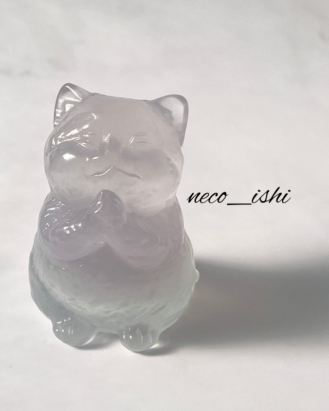 お祈りねこちゃん♡ イットリウムフローライト 優しいお色のパープルとグリーンが とっても可愛いお祈り猫ちゃんちゃんが 入荷しましたよー!! ちょっとふっくらした、ワガママボディが これまた可愛い♡ 是非お迎えお願いします♪ 石:イットリウムフローライト 産地:中国 サイズ 縦:56.6mm 横:41.1mm 幅:39.8mm 体重:147g イットリウムフローライトの効果☆ イットリウムフローライトは、イットリウムを含むことで通常のフローライトよりも強力なエネルギーを持つとされ、精神の浄化や心の安定、直感力の向上に効果があるとされています。また、集中力向上やストレス解消、精神のクリアリングにも役立つとされ、スピリチュアルな面でも注目されています。