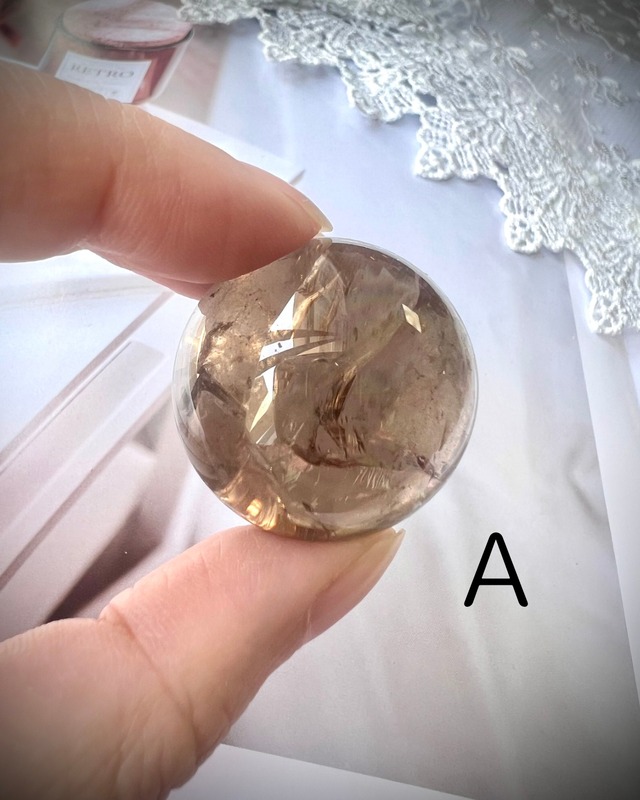 ミニスフィア A.スモーキークォーツ ※ライオンのスフィアスタンドは付属しません。 大きさ:30.7mm 重さ:40g スモーキークォーツの効果⭐︎ スモーキークォーツは、心身の安定を促し、ネガティブなエネルギーから身を守る効果があるとされています。また、ストレス軽減、安眠、癒し、邪気払い、精神的な成長を促すなど、様々な効果が期待されています。