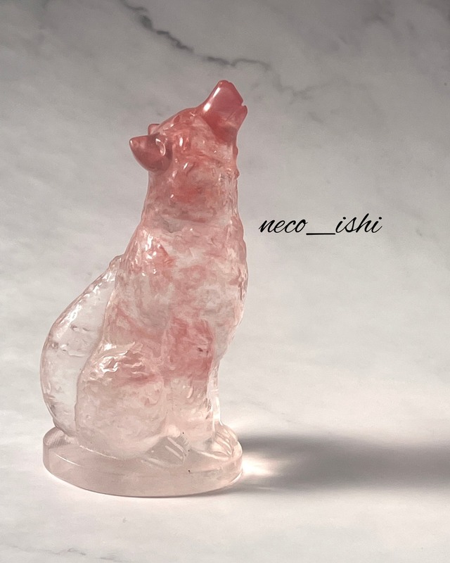 お座りオオカミさん レッド溶錬水晶 中国産 身長:103.7mm 横幅:37.1mm 奥行き:53.4mm 体重:166g とっても美しい、、、 レッド溶錬水晶のお座りオオカミさん♡ まっすぐ上を向いてお座りしている姿が 可愛すぎます!!! どんな時でも上を向きなさいと教えてくれているように感じます♪ 是非、お迎えお待ちしております☆ 溶錬水晶の効果☆ 溶錬水晶には、魔除けや空間の浄化、精神的リラックス、行動力向上などの効果があると言われています。 溶錬水晶の主な効果 魔除け・空間浄化: 邪気やマイナスエネルギーを払い、家や職場の空間を浄化するといわれています。 精神的リラックス: 精神を安定させ、リラックスさせる効果があるといわれています。 行動力向上: 行動力を高め、活力を与えてくれるとされています。 集中力向上: 雑念を取り去り、集中力を高める効果があるといわれています。 溶錬水晶とは?? 溶錬水晶とは、天然水晶の粉を高温で溶かして再形成したものです!