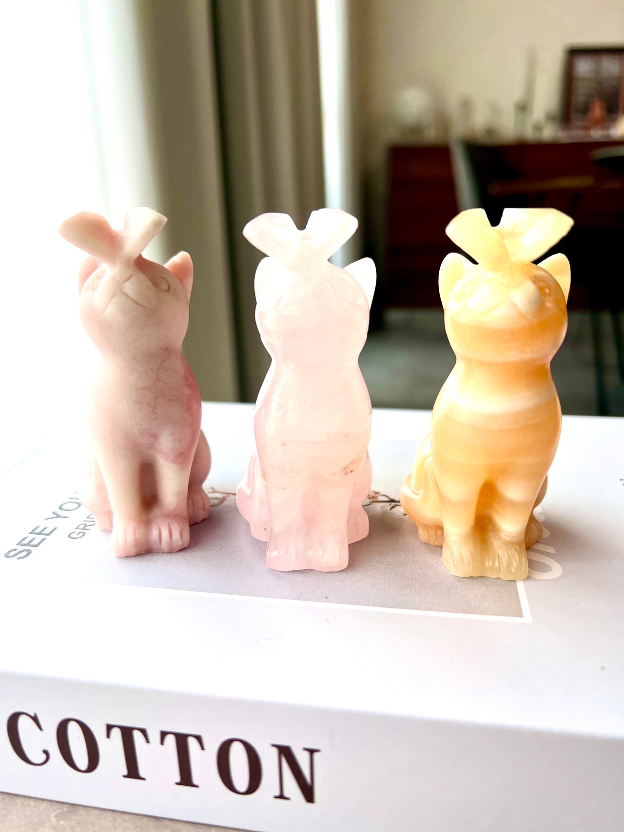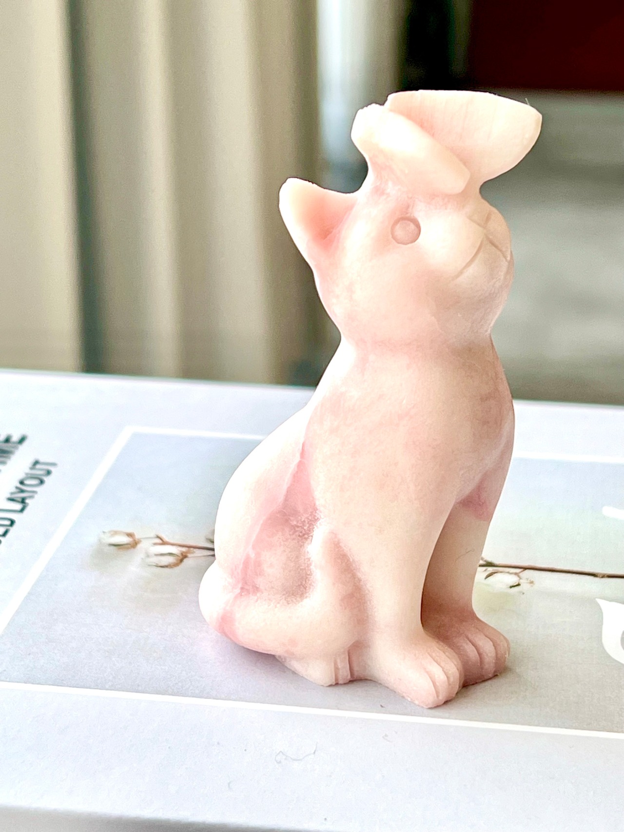 蝶々ねこ ピンクオパール 置物/猫/天然石/パワーストーン/愛/心身のバランスを整える