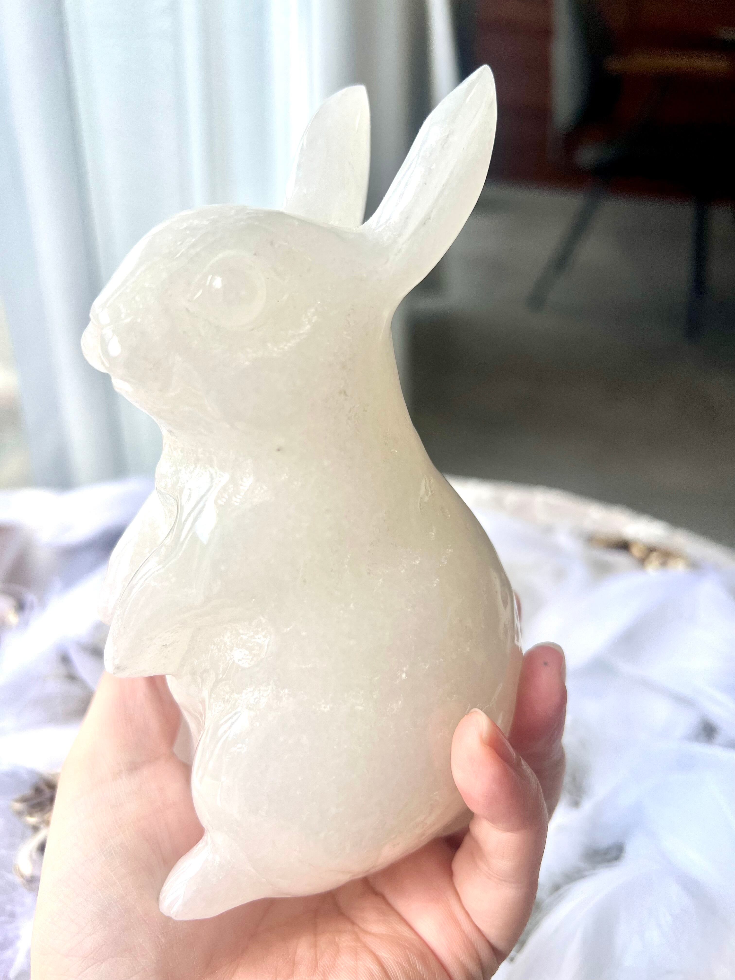 【BIG】うさぎ アラバスター 置物/天然石/パワーストーン/ホワイト/邪気払い/金運/財運/浄化/癒し