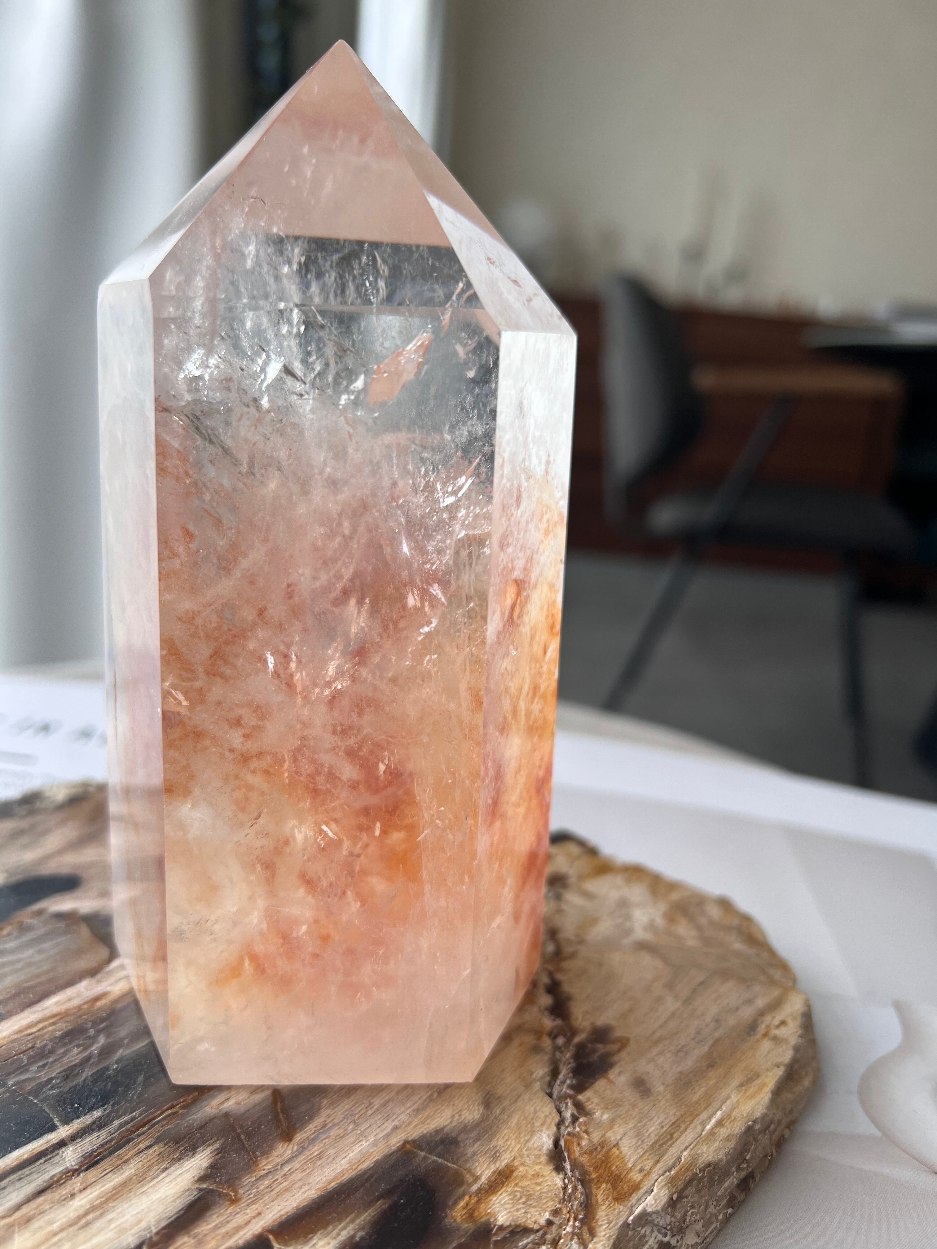 タワー ゴールデンヒーラーwithファイヤークォーツ 水晶/クリア/レッド/イエロー/浄化/決断力/目標達成