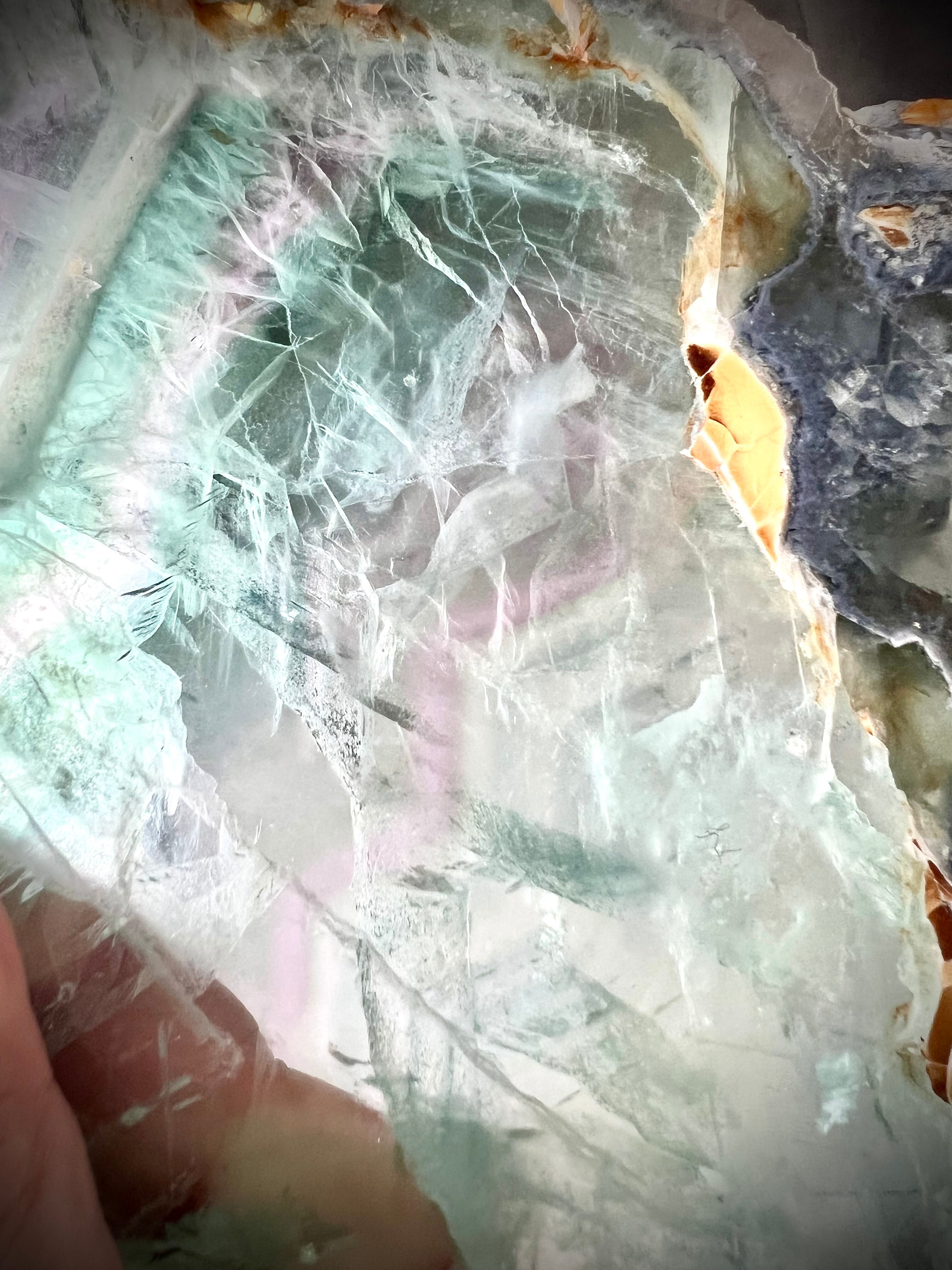フローライトスラブ♡ アゲート共生 虹あり プレート/スラブ/健康運/勉強運/集中力UP/精神安定/ピンク/グリーン/ブルー/パープル/クリア