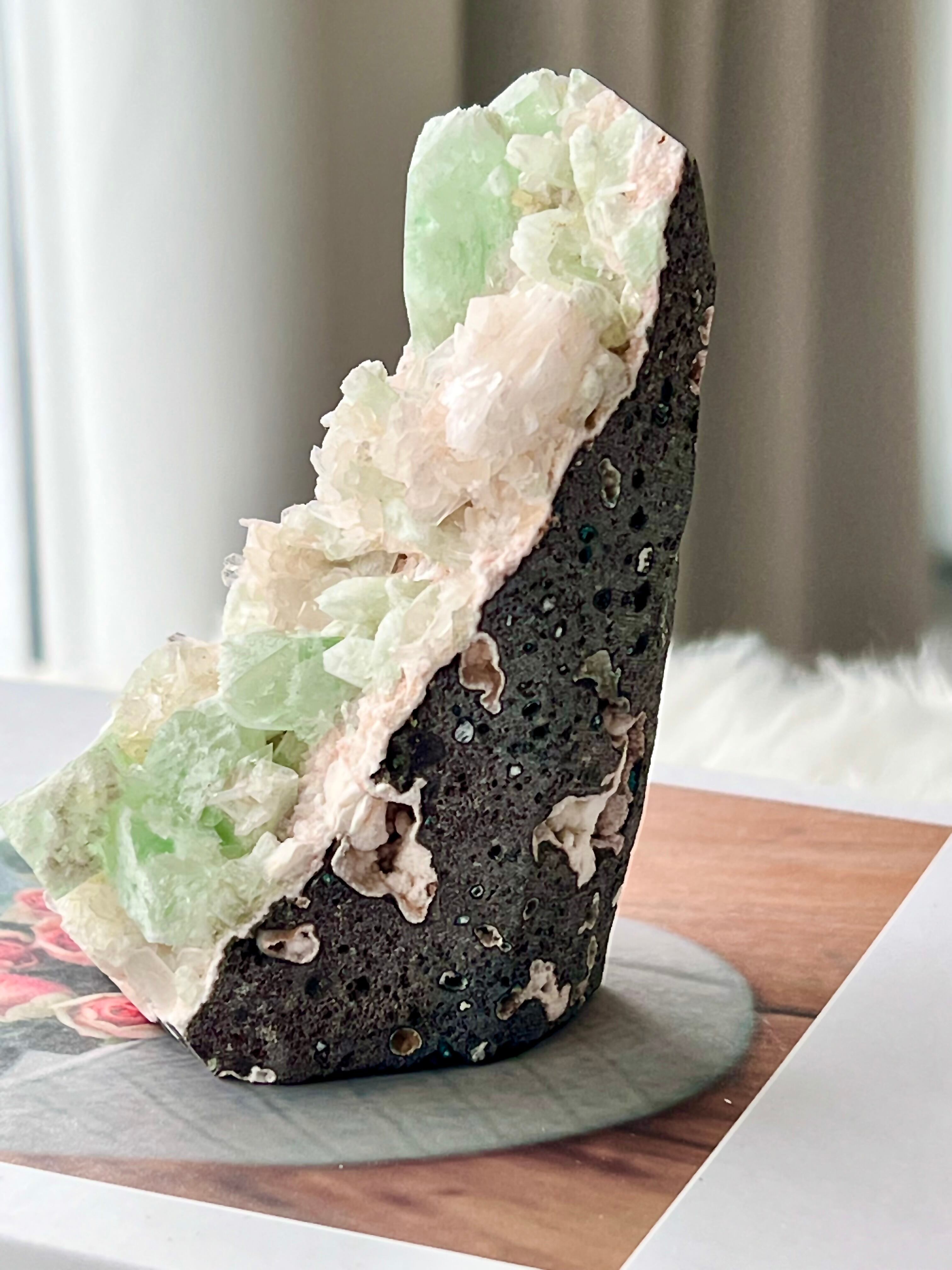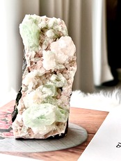 原石 グリーンアポフィライトwithピンクカルサイト 天然石 癒し/浄化/精神安定/悪夢予防
