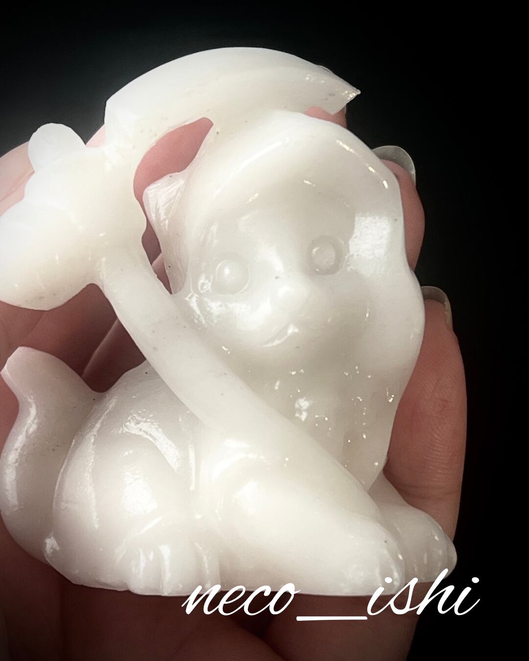 ハロウィン死神ねこちゃん アラバスター/邪気払い/金運/財運/強力な浄化作用/癒し/潜在能力発揮/ホワイト