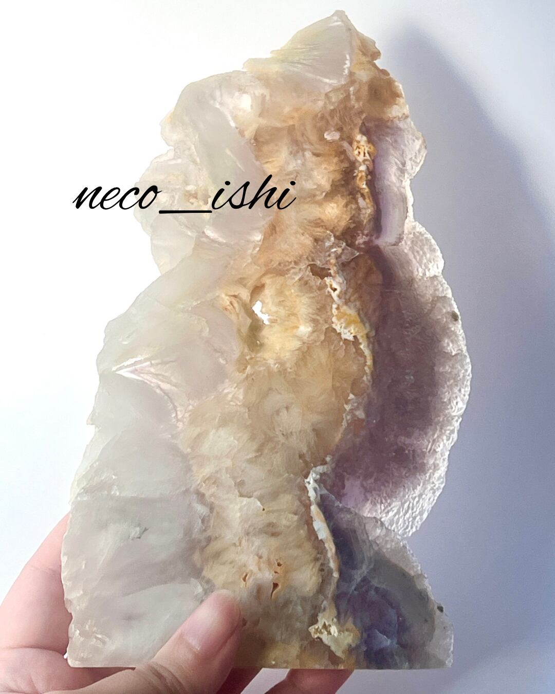 フェザーフローライトは、フローライトの一種で、石の中に天使の羽のような白い内包物が入っているのが特徴です。この石は、自由な発想や直感力を高め、心身のバランスを整える効果があるとされています。また、感情の解放や癒しの力も持ち、ストレスや不安を和らげると言われています。