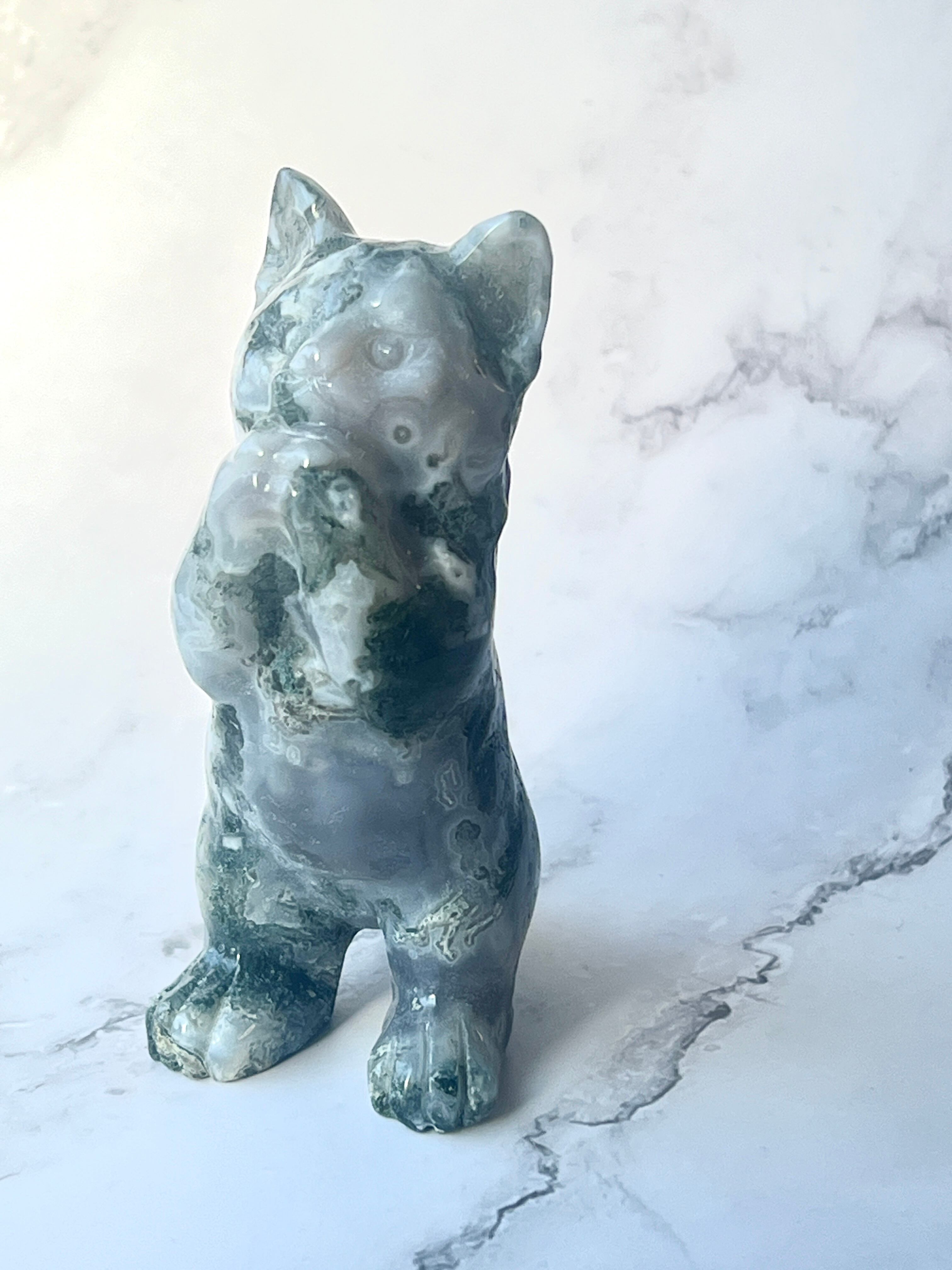 【ご予約商品】お祈り猫ちゃん ドゥルージーモスアゲート