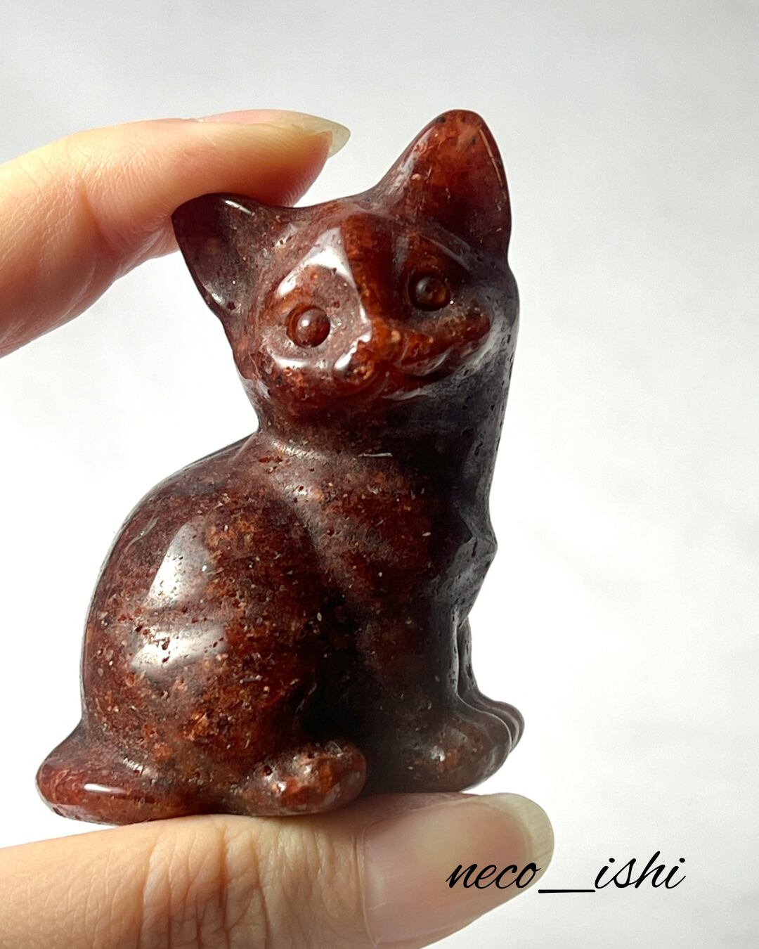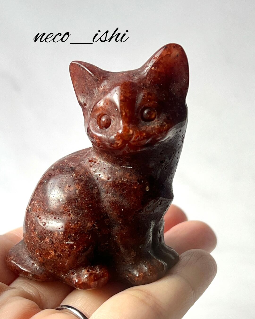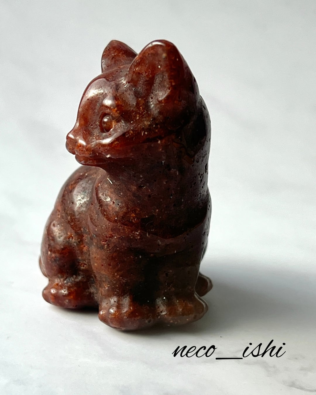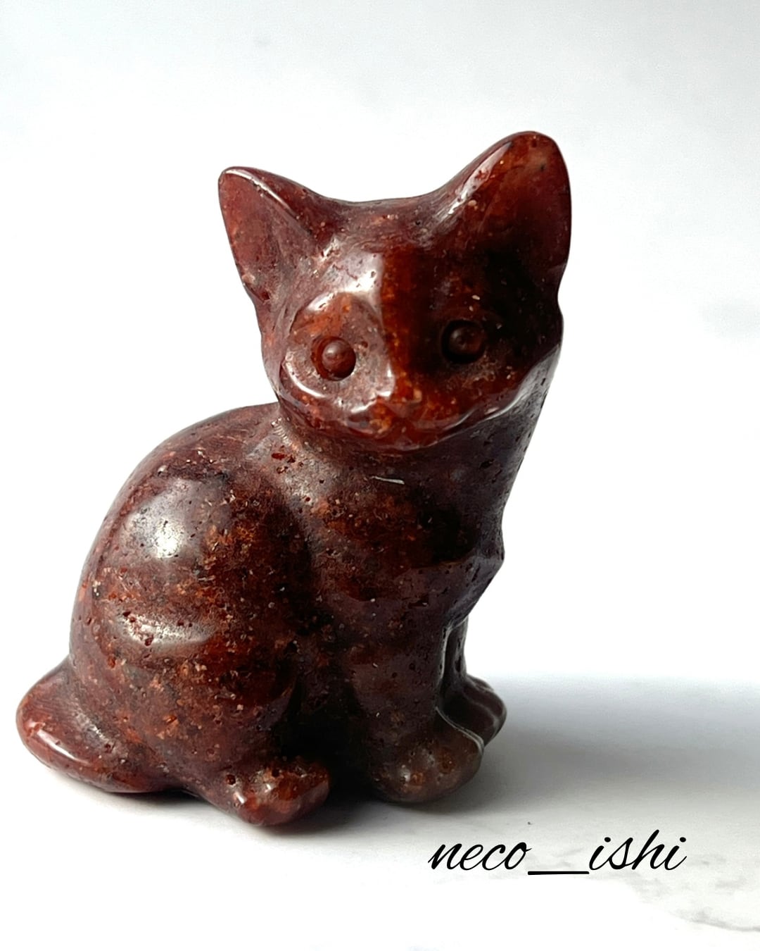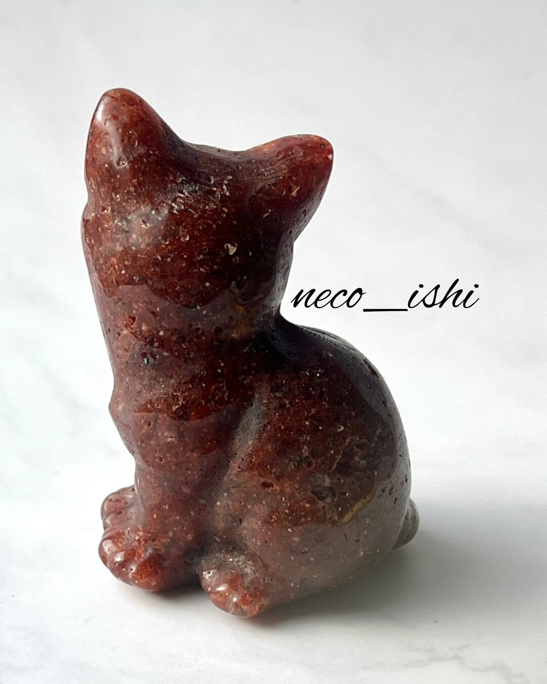 お座り猫ちゃん ゴールデンストロベリー 天然石/開運/パワーストーン/幸運/自己肯定感の向上/恋愛運アップ/夢や目標の実現/レッド