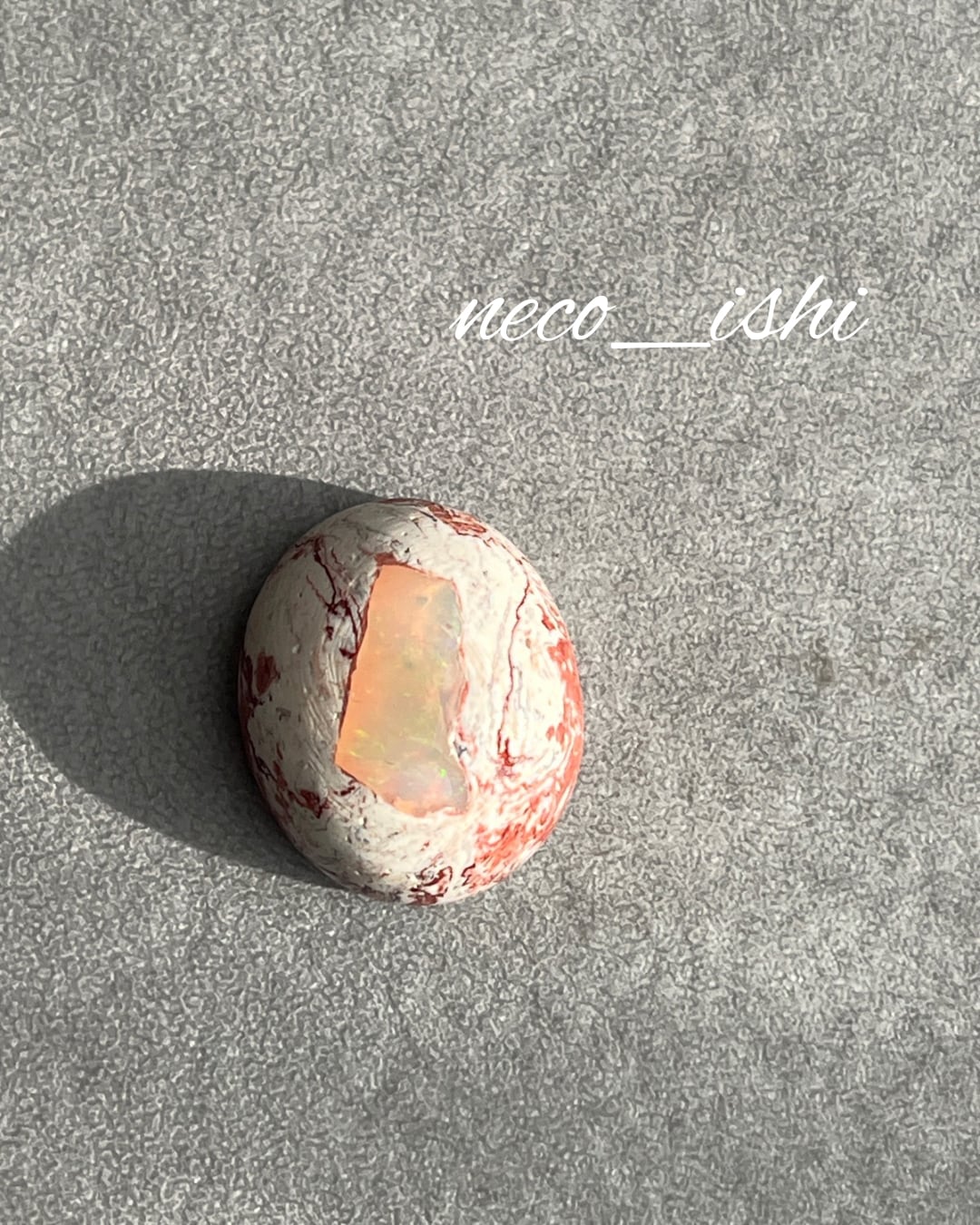 多彩な色を持つオパールを封じ込めて磨き込まれた母岩は、まるで虹を抱く卵のようなかわいらしい印象を与えてくれます。