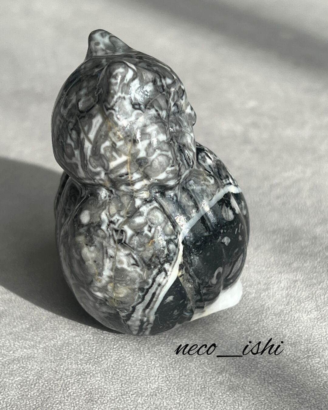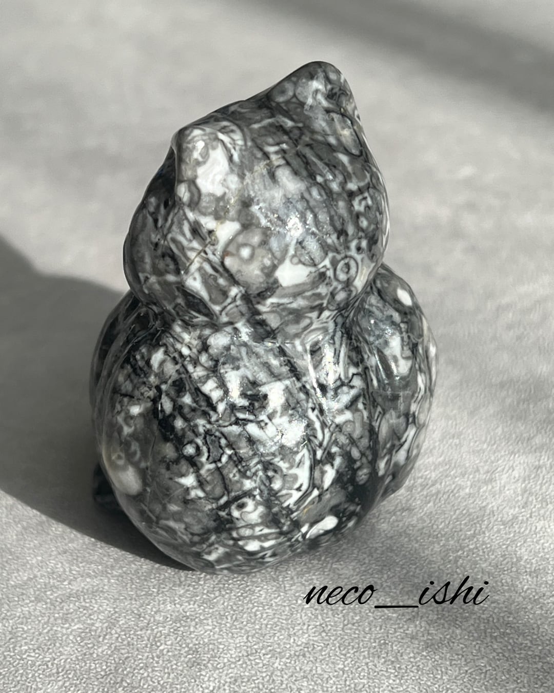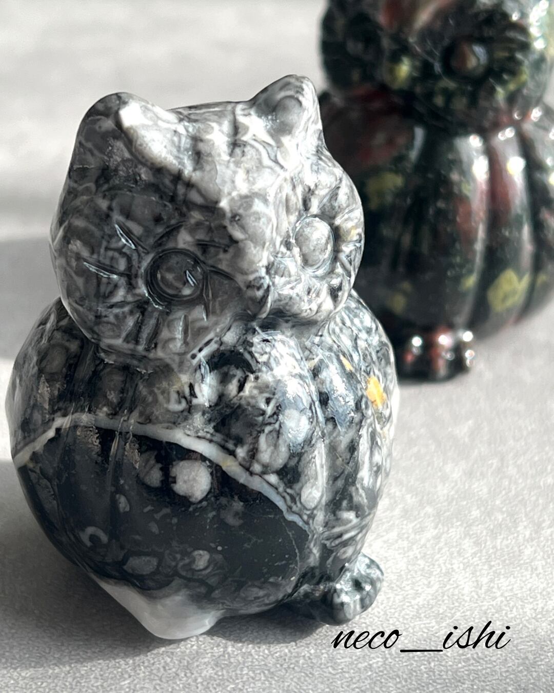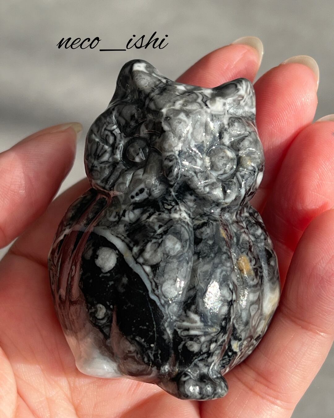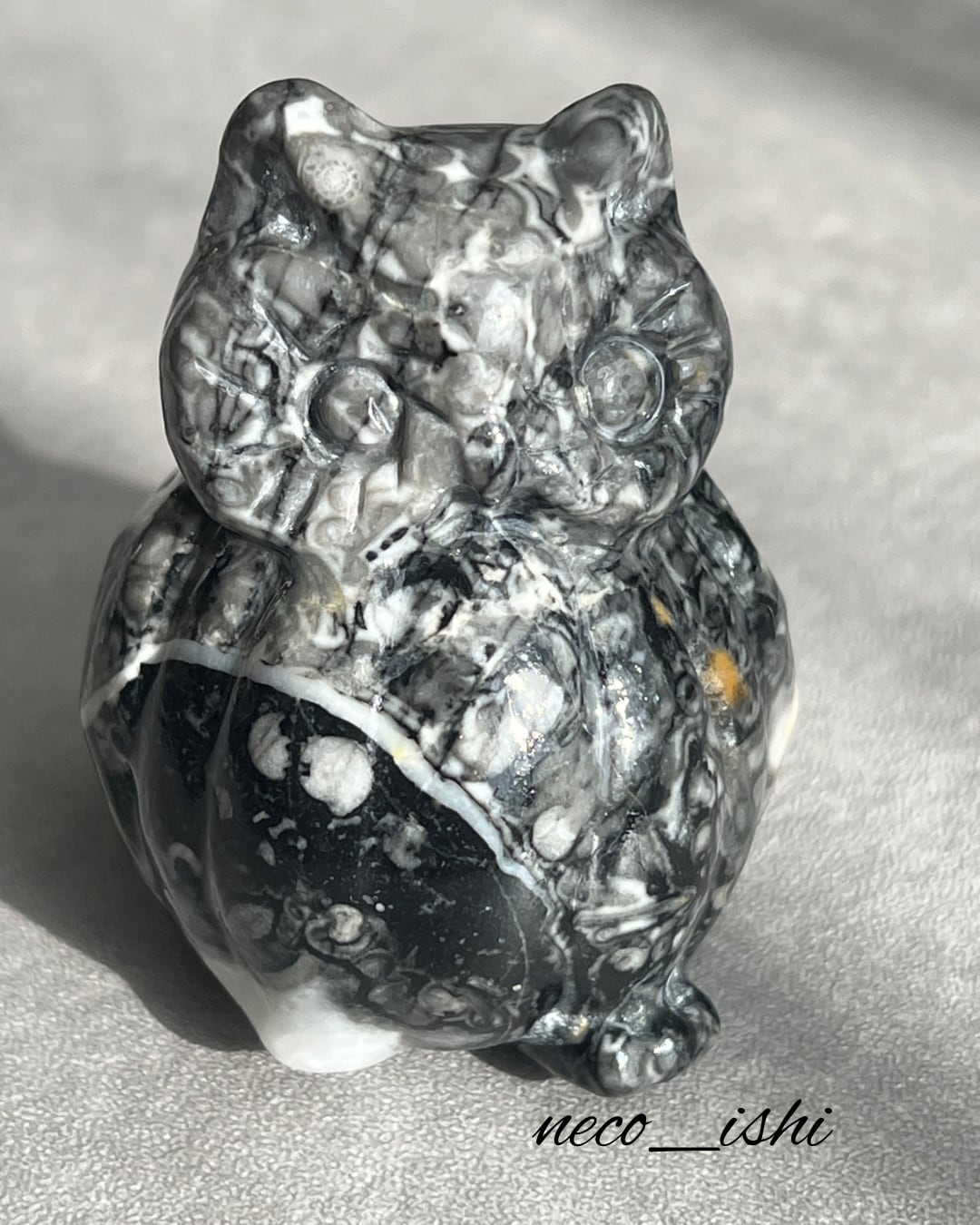 フクロウ ピカソジャスパー 天然石/パワーストーン/開運/精神的安定/創造性の向上/人間関係の改善/目標達成 ブラック、ホワイト、グレー