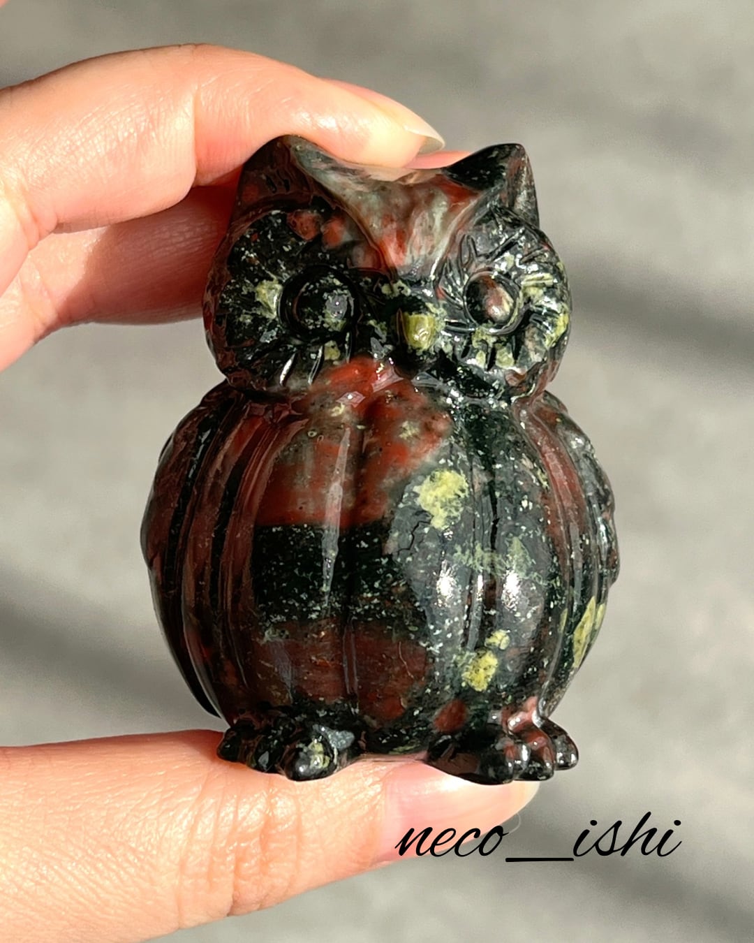フクロウ ドラゴンジャスパー 天然石/パワーストーン/開運/仕事運アップ/精神的安定/疲労回復 ブラック、レッド、グリーン