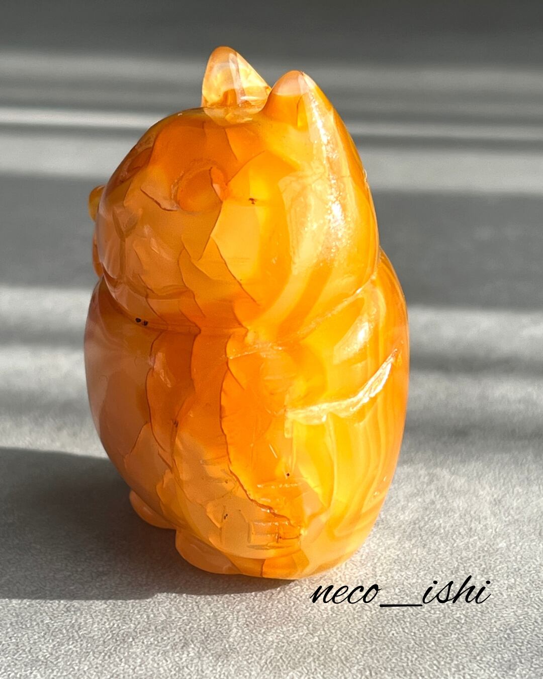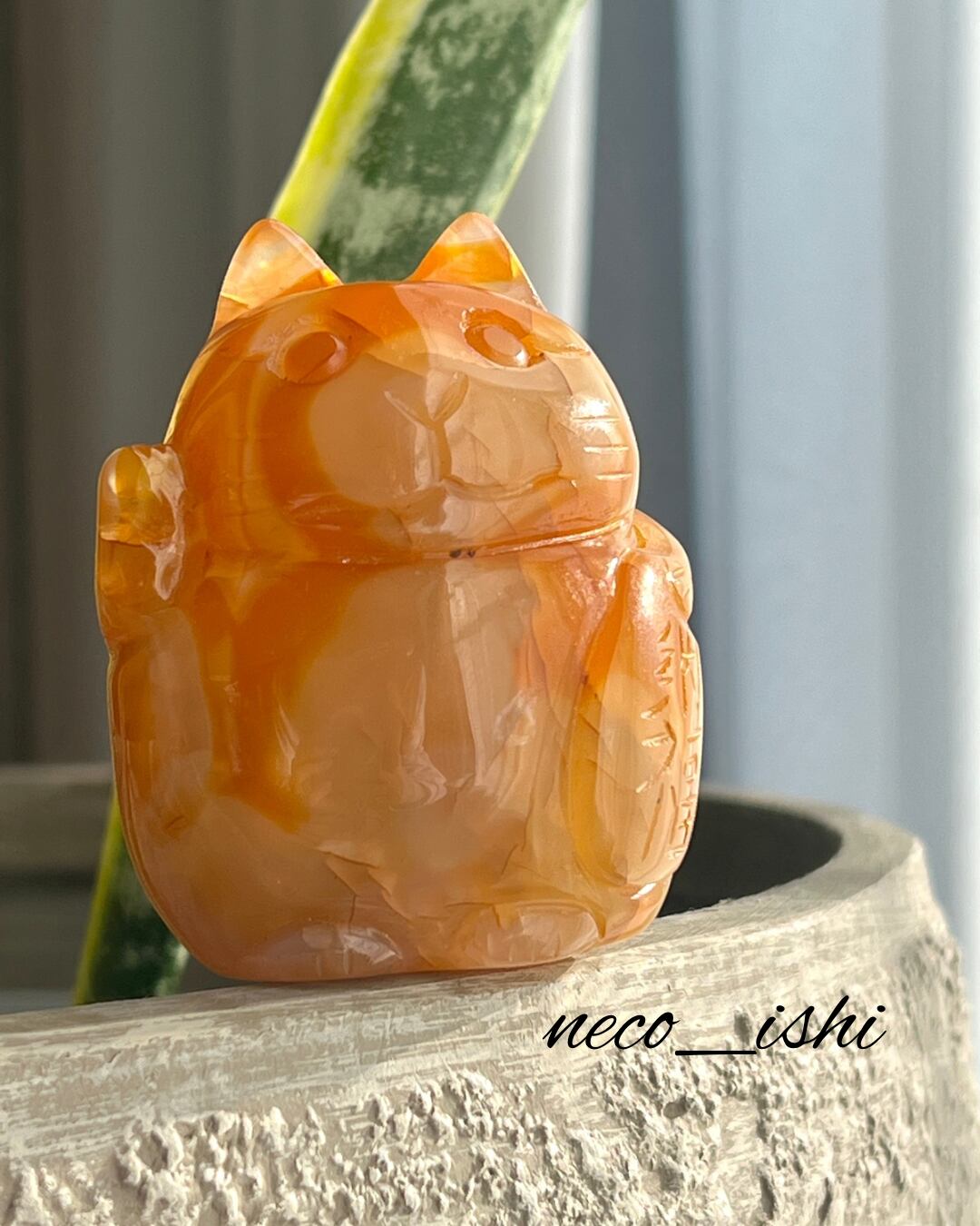 招き猫 瑪瑙 天然石/パワーストーン/開運/心身のバランスの調整/ストレス軽減/魔除け/厄除け オレンジ、イエロー