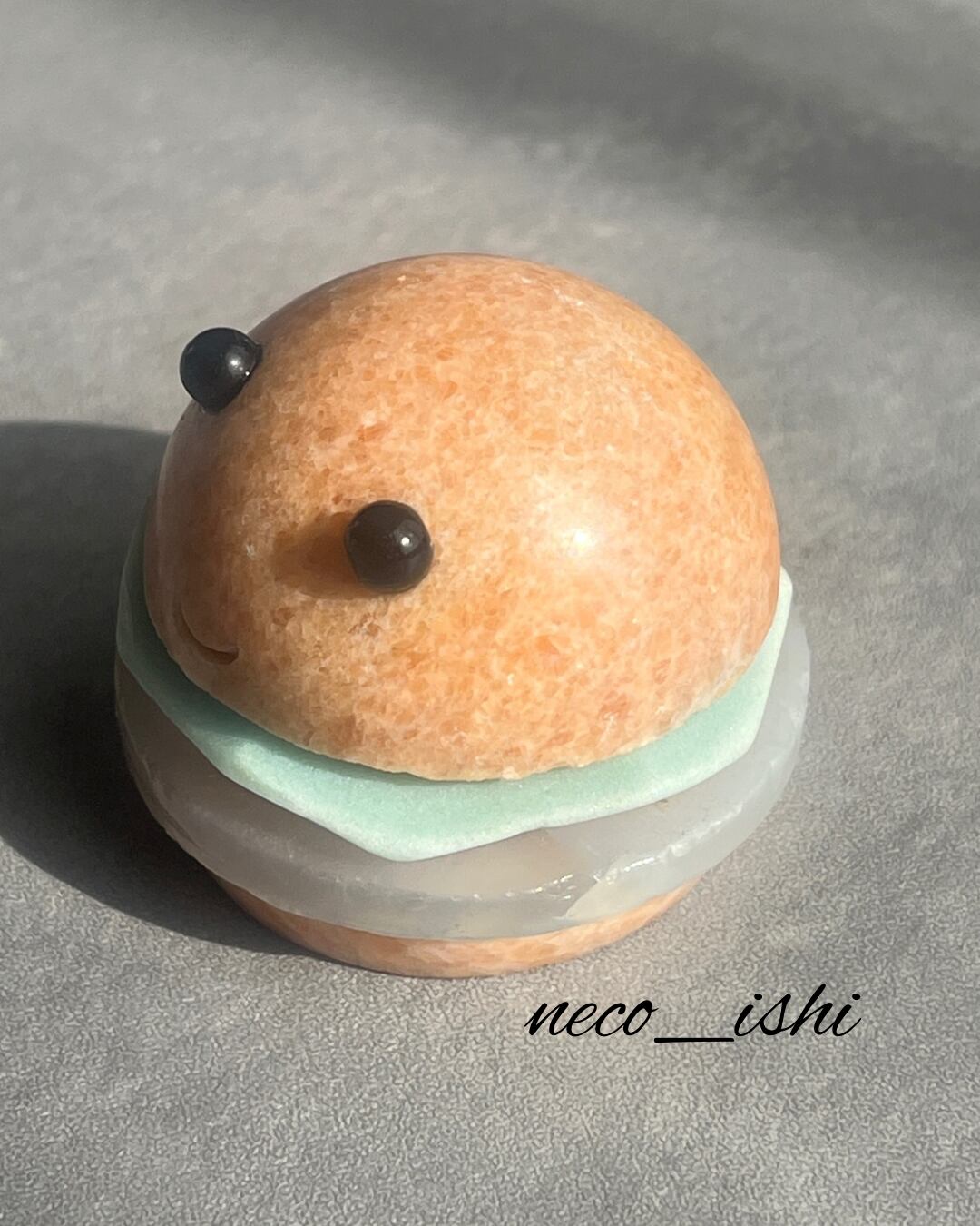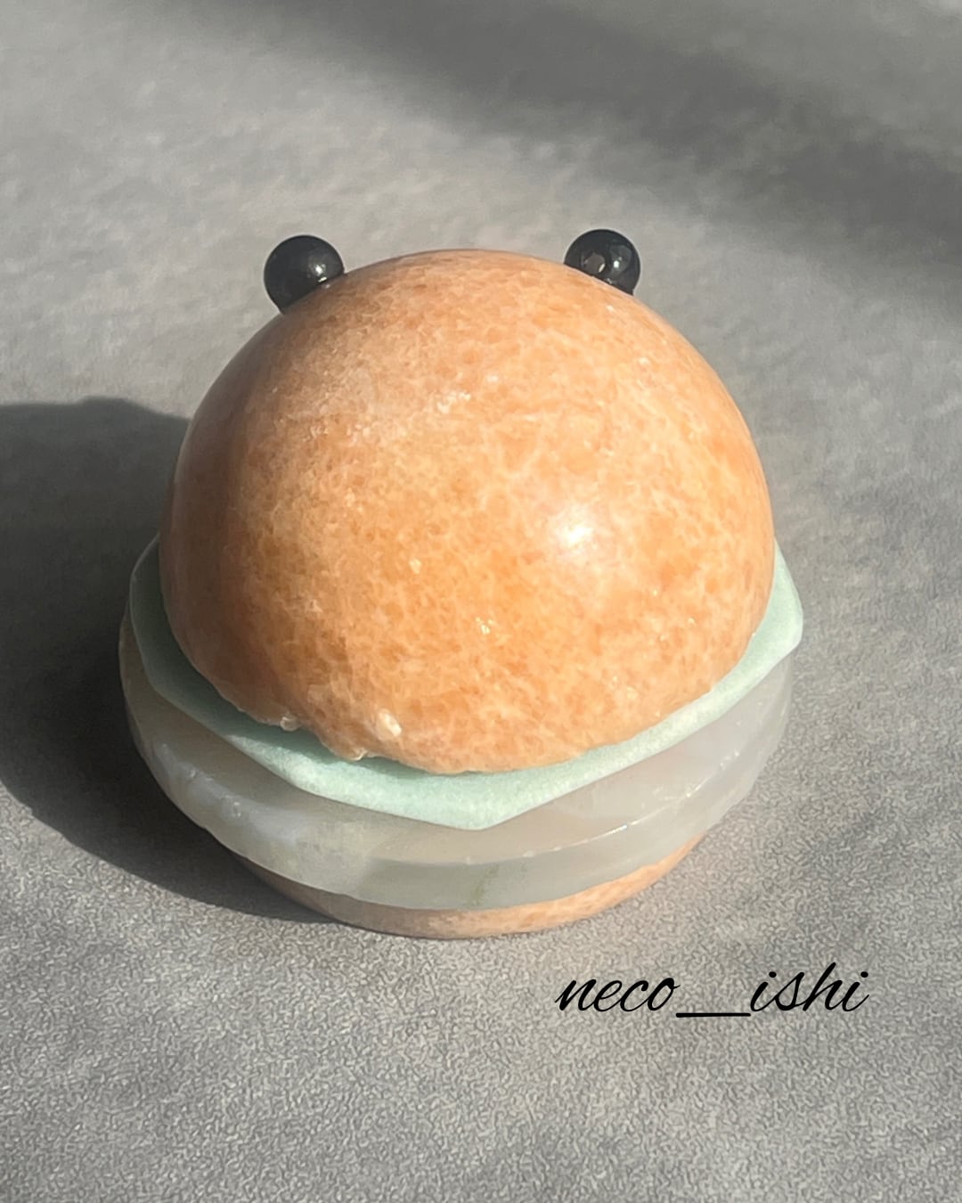 ハンバーガーくん カルサイト・瑪瑙 天然石/開運/パワーストーン/心のバランスを整える/エネルギーの増幅/浄化作用/対人関係改善/守護/オレンジ/グリーン/クリア