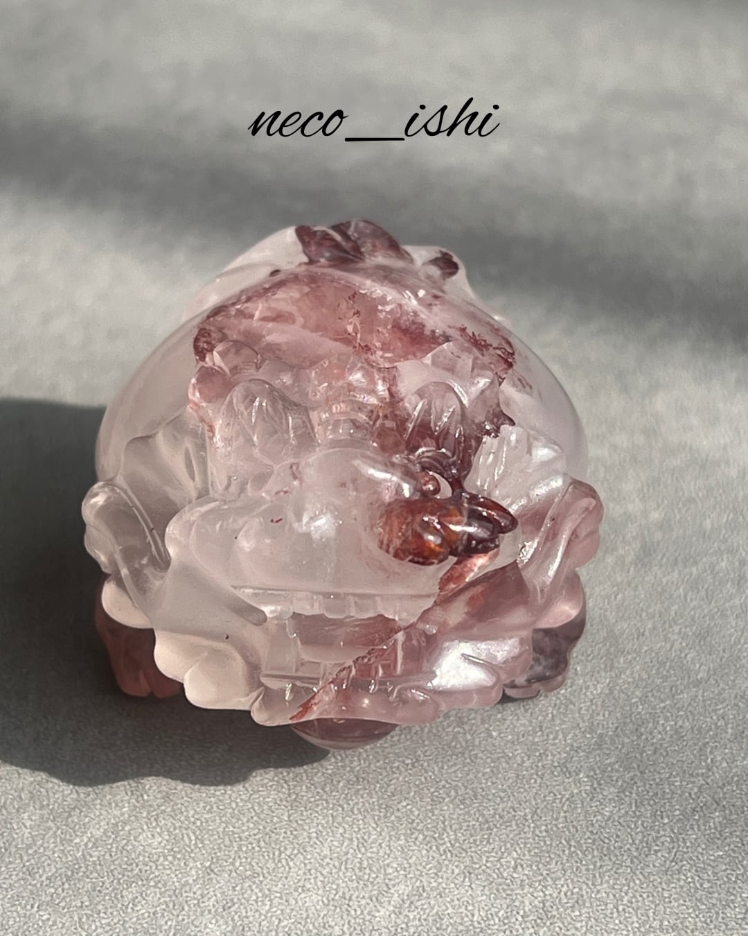 ローズクォーツinファイヤークォーツは、愛と癒しの「ローズクォーツ」と、行動力や情熱をもたらす「ファイヤークォーツ」の特性を併せ持つ強力なパワーストーンです。優しさで心を癒しつつ、前へ進む勇気と活力、成功へと導く高い行動力をサポートする効果が期待されます。