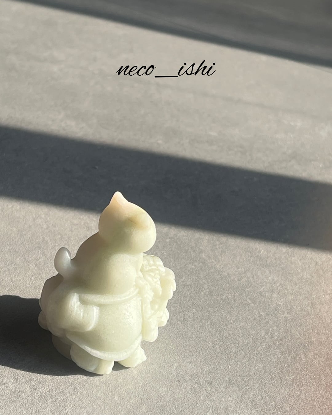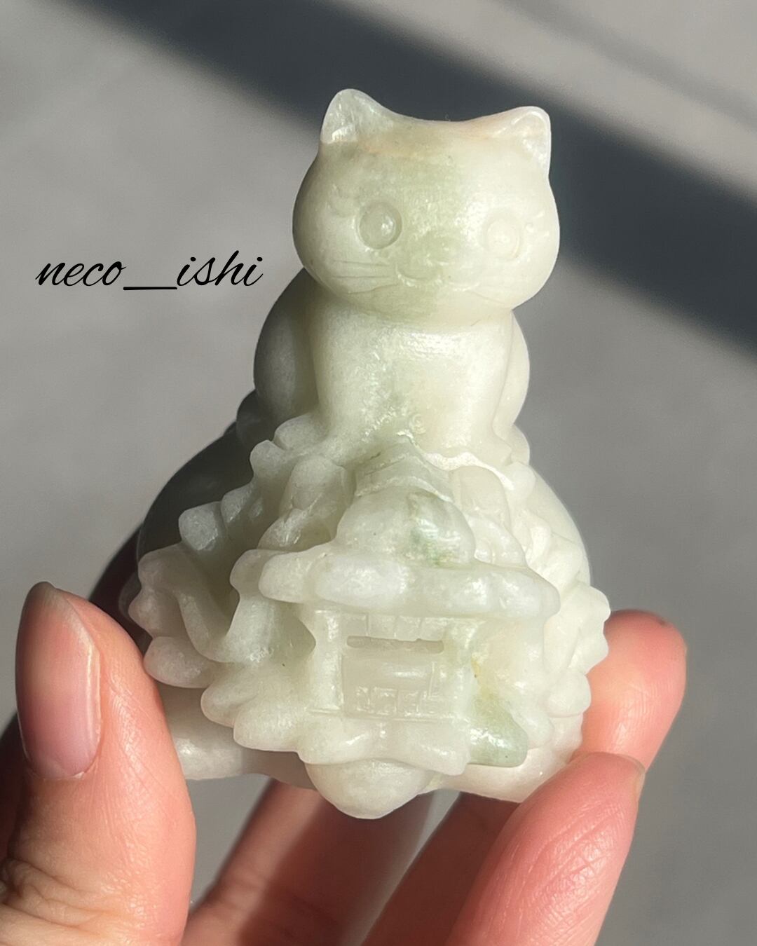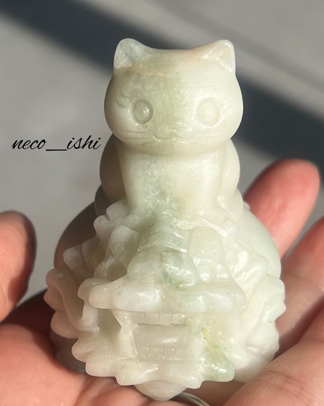 ねこ乗りロングイ 多くの幸運をもたらす♡ ジェイド 天然石/パワーストーン/開運/奇跡の石/繁栄/長寿/幸福/グリーン