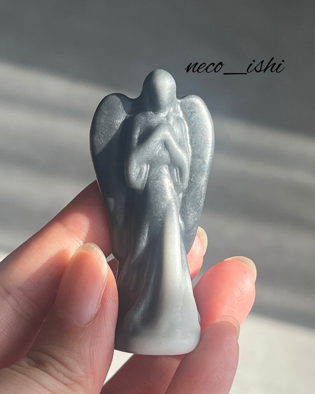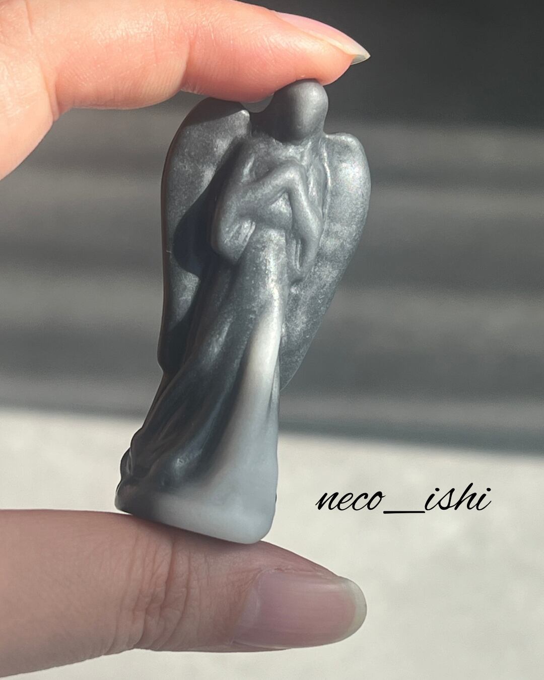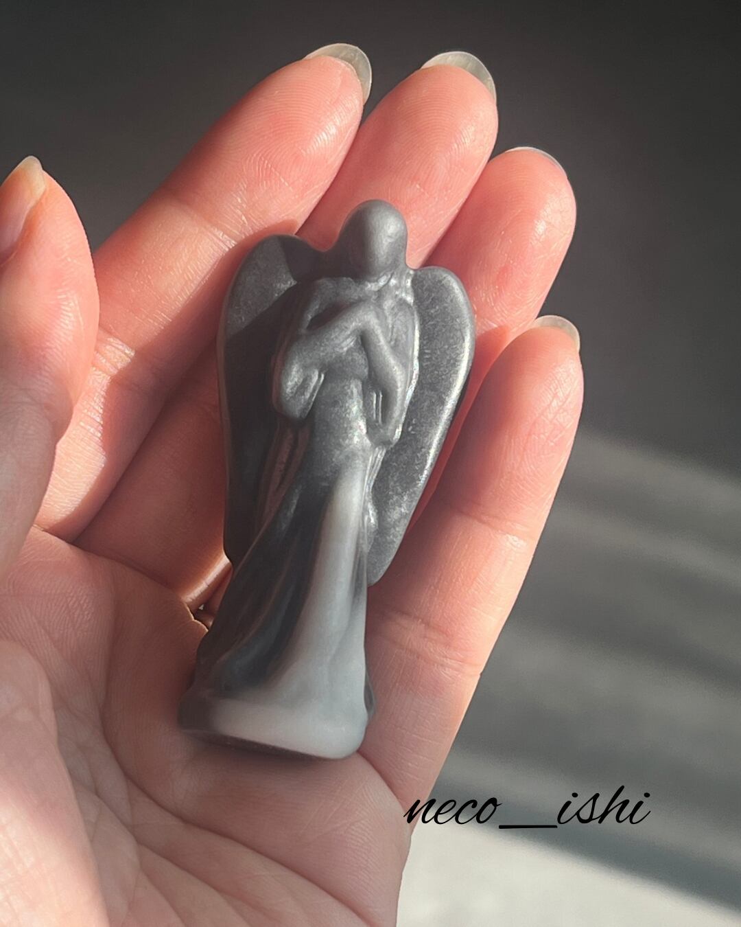 太極石のお祈り天使さま♡ 天然石/パワーストーン/幸運/富/魔除け/家庭円満/ブラック/グレー/