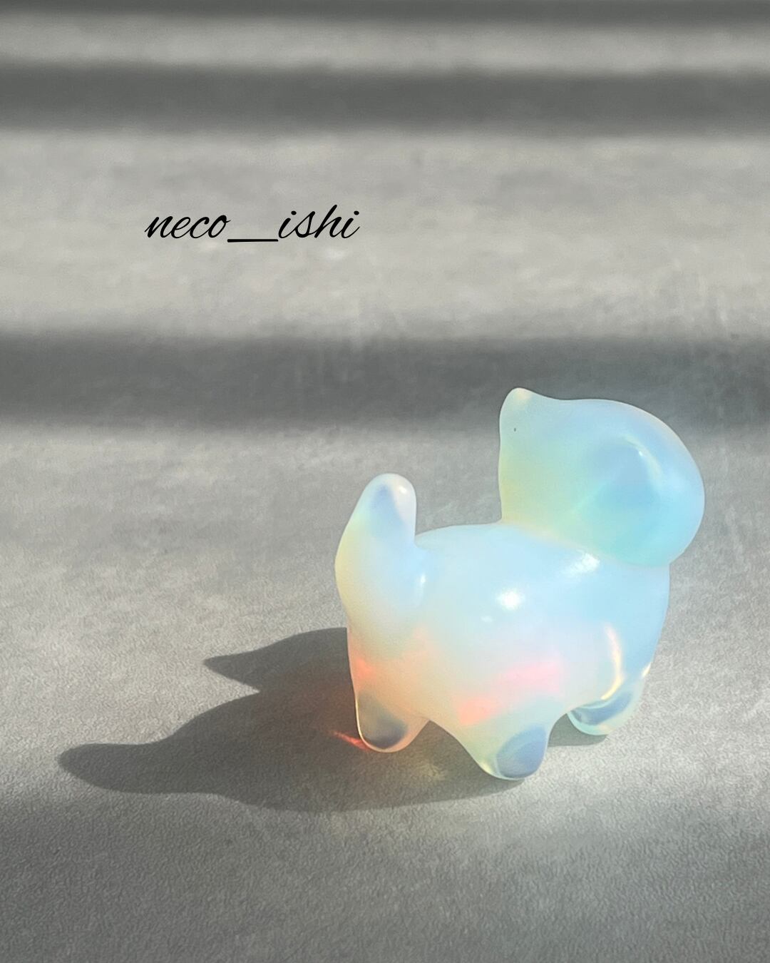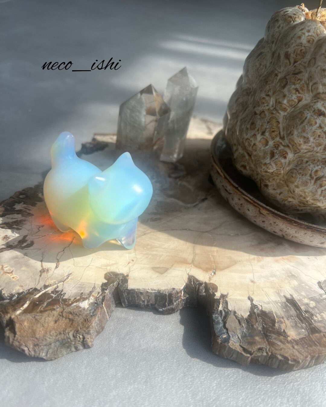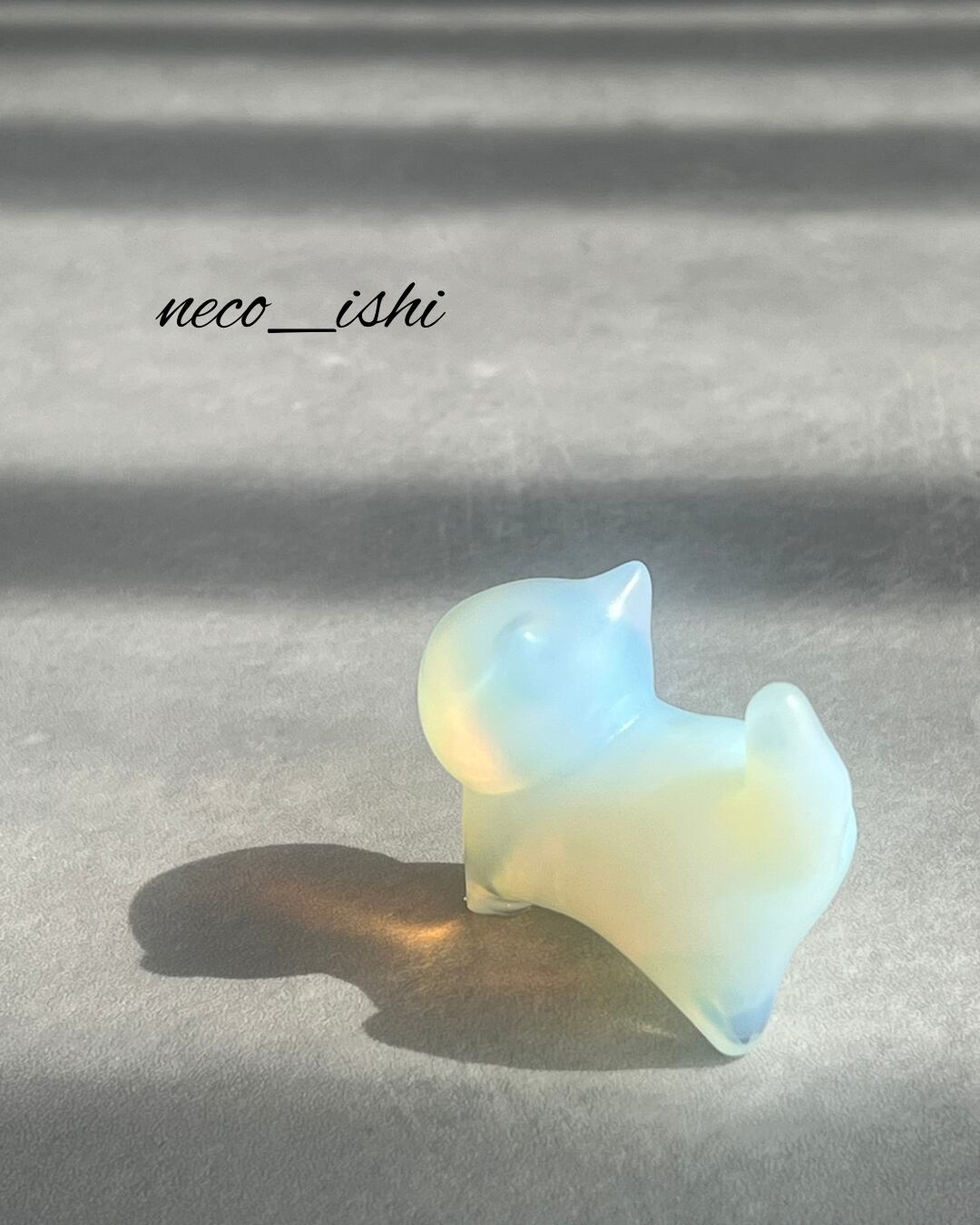 幸運を引き寄せる!お散歩ねこちゃん Lucky Cat Opalite オパライト 猫/天然石/開運/パワーストーン/夢/希望/癒し/ホワイト