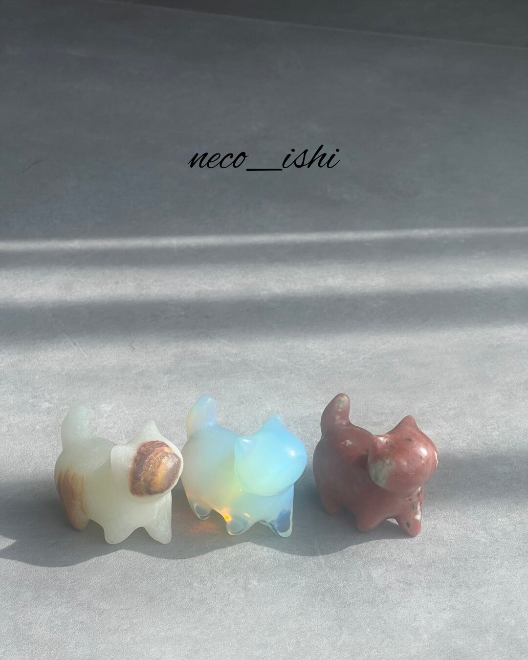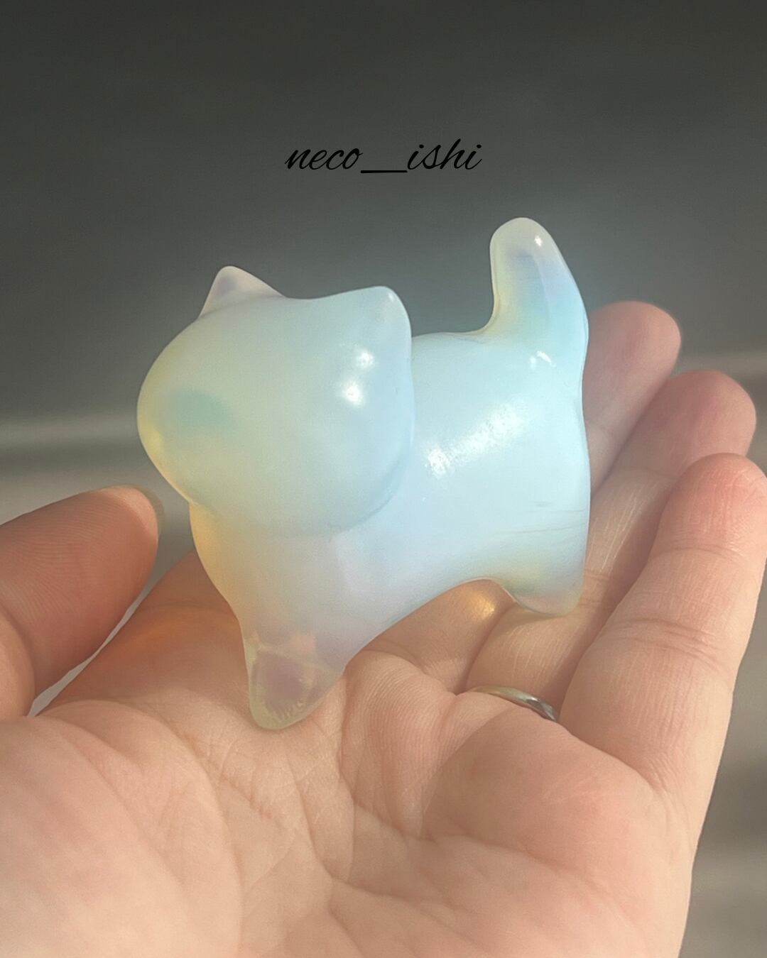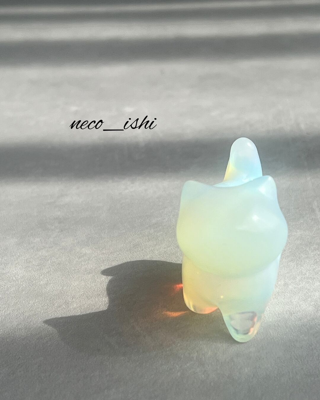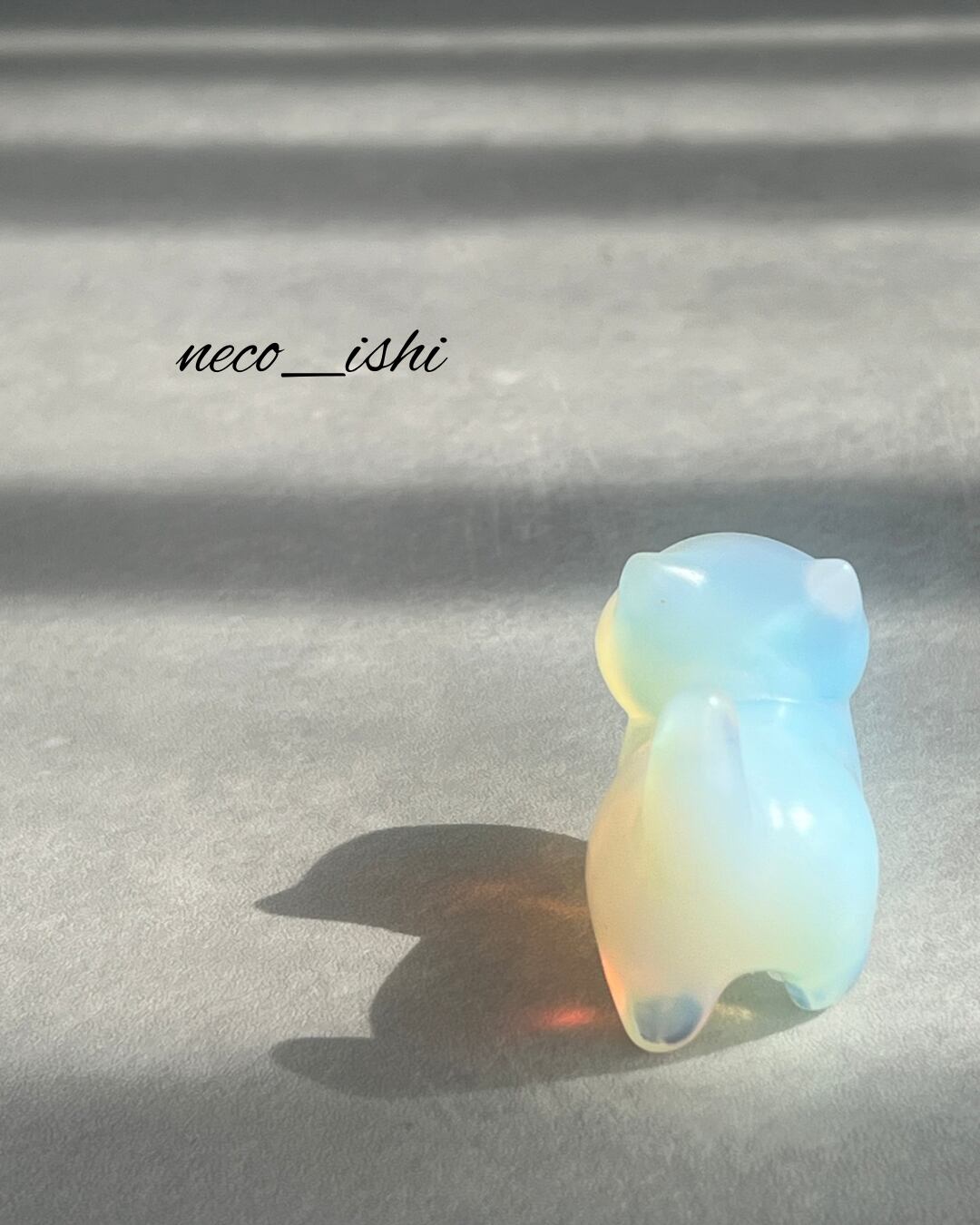 幸運を引き寄せる!お散歩ねこちゃん Lucky Cat Opalite オパライト 猫/天然石/開運/パワーストーン/夢/希望/癒し/ホワイト
